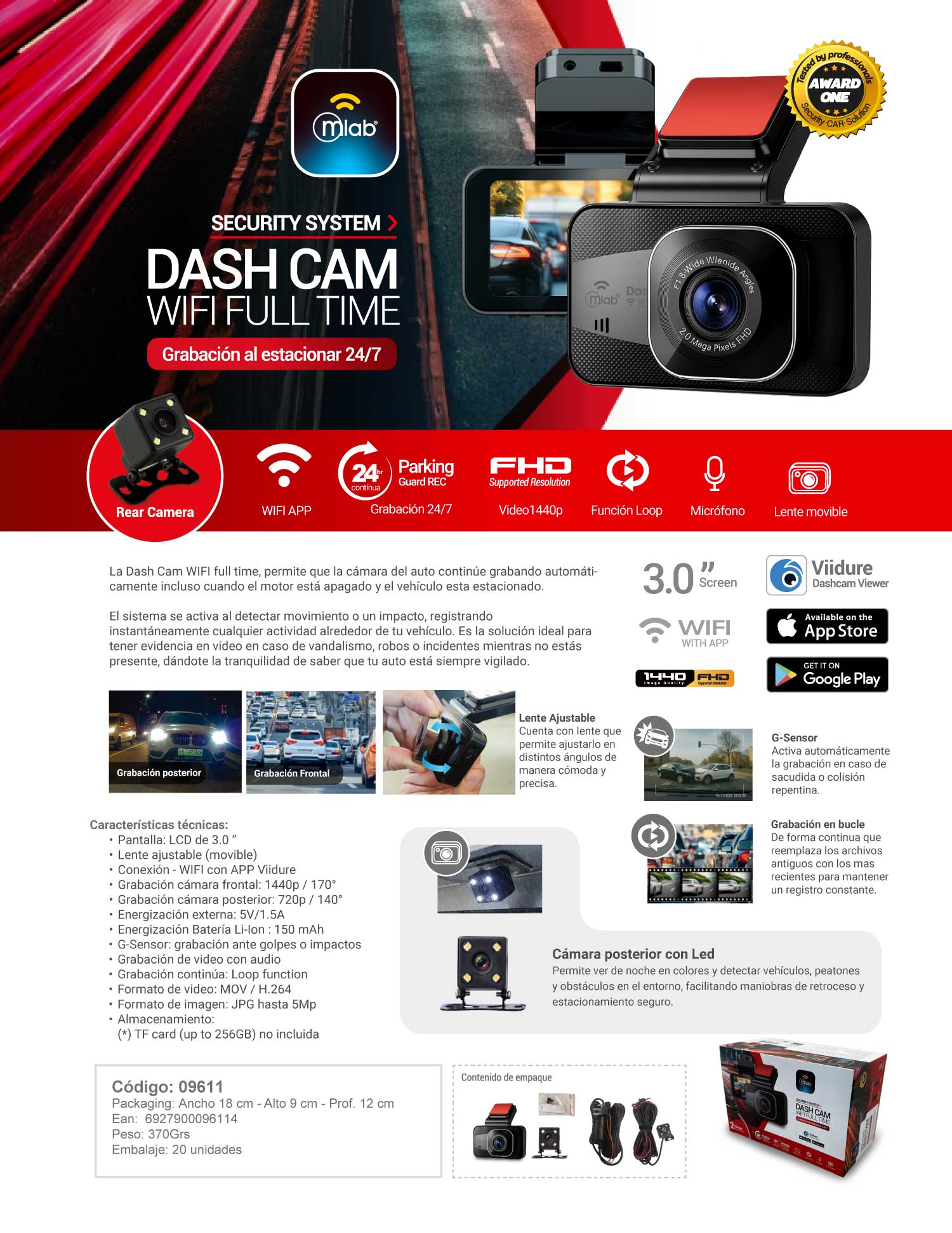 La Dash Cam WIFI full time, permite que la cámara del auto continúe grabando automáticamente incluso cuando el motor está apagado y el vehículo esta estacionad
